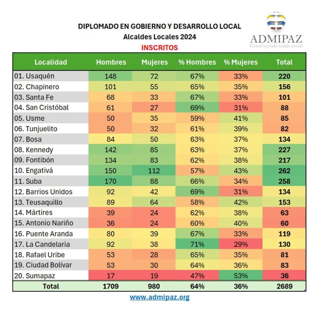La Corporación Administración Pública para la Paz y el Desarrollo – ADMIPAZ. Dió a conocer el 24 de febrero, cifras de inscritos para la elección de los 20 alcaldes locales por parte de Carlos Fernando Galán como alcalde de Bogotá