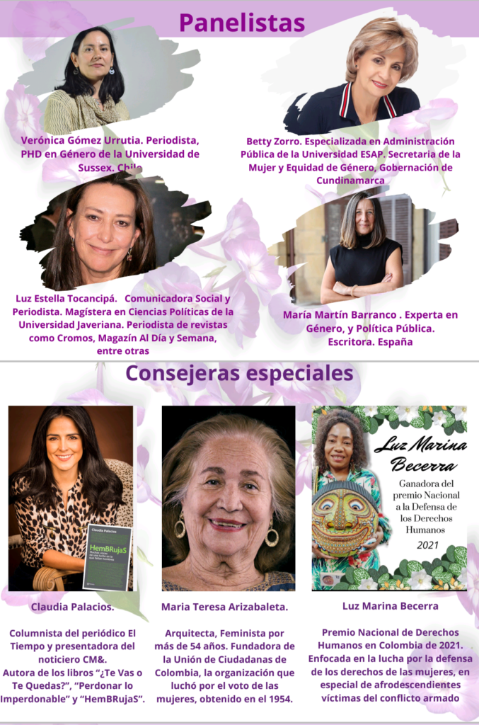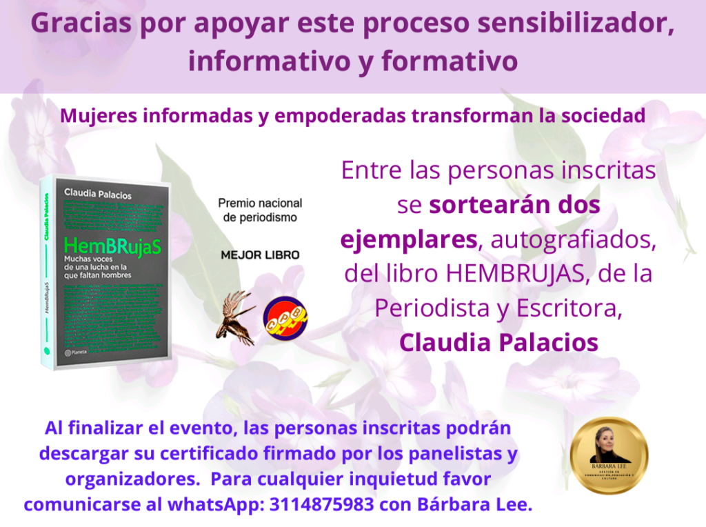 Invitación que se extiende gracias a la Gobernación de Cundinamarca, La Secretaría de Educación de Funza Cundinamarca, La Fundación Escuela de Estudios Feministas de Cali, la Alcaldía de Cajicá, La Federación Departamental de Mujeres campesinas de Cundinamarca, Colectivo de Mujeres negras en resistencia La Comadre y Evefem de España.