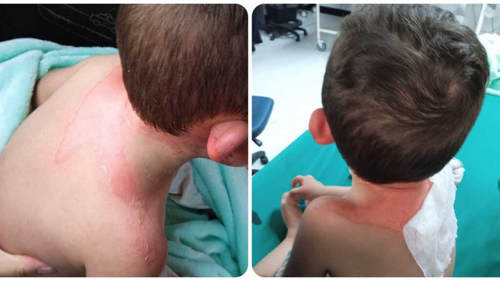 El hecho ocurrido al parecer el 29 de marzo del 2022, estremeció a varios padres de familia que aún se indagan como resultó un menor de 23 meses quemado con agua caliente, teniendo quemaduras de segundo grado en parte de su cuerpo como: nuca, orejas, espalda y hombros.