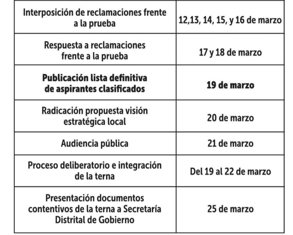 Estás son las fechas pendientes del proceso que darán como resultado la posesión de un alcalde o una alcaldesa local en propiedad para la localidad de Fontibón.