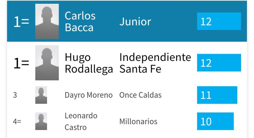 Ante el empate en goles del goleador de Independiente Santa Fe Hugo Rodallega y Carlos Bacca del Junior de Barranquilla, existe una regla que desempata y deja al jugador del Junior como goleador del torneo.