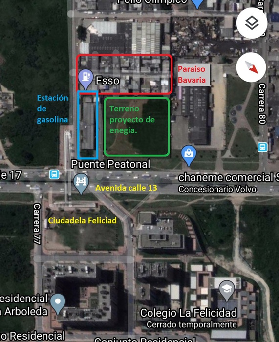 Su preocupación consiste en la instalación de una subestación eléctrica que llevará el nombre de «Terminal» que se ubicará en la Calle 13 entre las Carreras 78 y 79, a escasos metros de una estación de gasolina de Esso Mobil.
